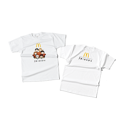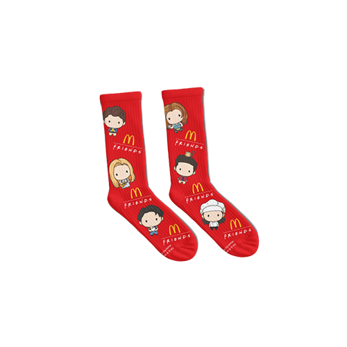 When you scan the QR code from the McDonald's mobile app in the restaurant, you will earn +100 points for each Friends Meal. These points can be used to get Friends-themed products – T-shirts, socks, and mugs. All products can be purchased separately and redeemed for points – choose what suits you best!
