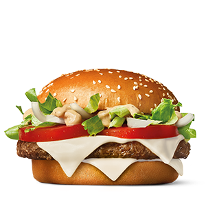 Dörd ədəd 100% halal mal ətindən döyülmüş bifşteks, soğan, iki dilim duzlu xiyar, bir dilim Çedder pendiri, Aysberq salatı və xüsusi Big Mac® sousu ilə hazırlanmış küncütlü xüsusi bulkada böyük bir burger.
