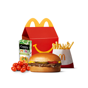 Happy Meal® əsas yemək, içki, əlavə yemək və oyuncaq və ya kitabdan ibarətdir.