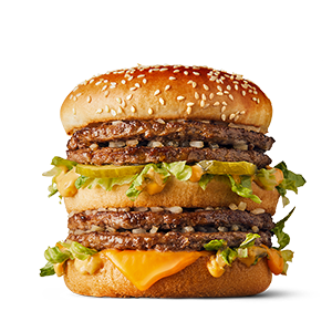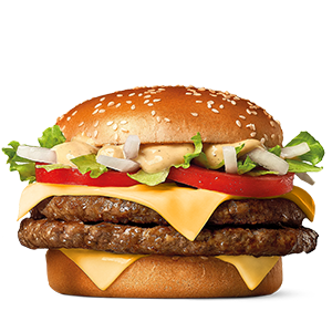 Böyük, 100% halal mal ətindən döyülmüş bifşteks böyük küncütlü bulkada. Üç dilim Emmental, iki dilim pomidor, Aysberq salatı, soğan və ləzzətli “Qril” sousu.