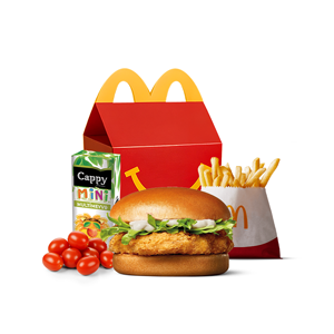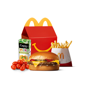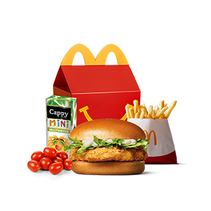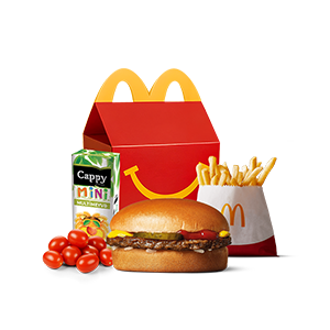 Happy Meal® əsas yemək, içki, əlavə yemək və oyuncaq və ya kitabdan ibarətdir.